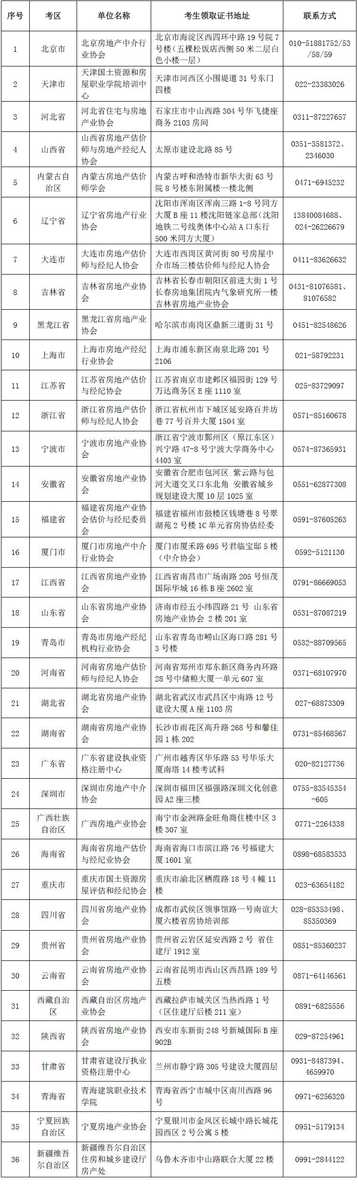 資格證書領取單位名稱、地址及聯系方式見附表,具體領取時間以各地方考試實施機構安排為準。