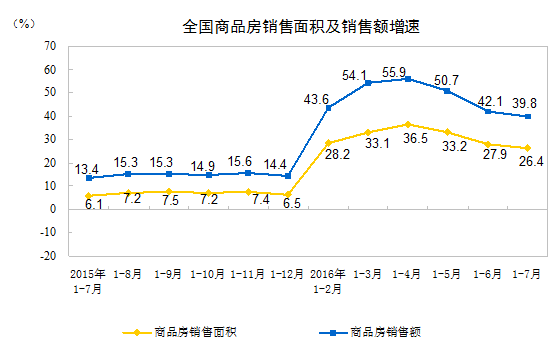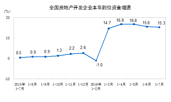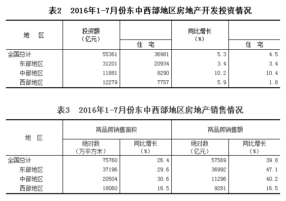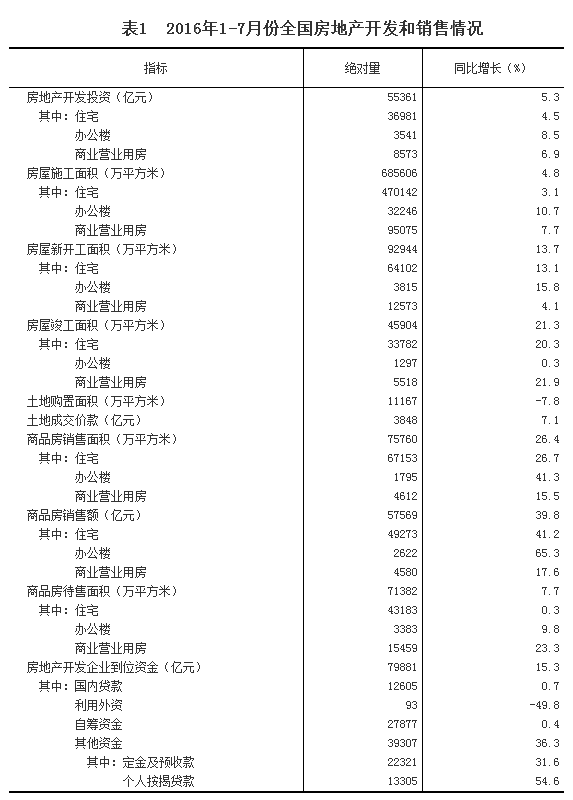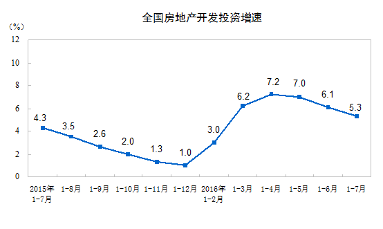2016年1-7月份全國房地產(chǎn)開發(fā)投資和銷售情況
