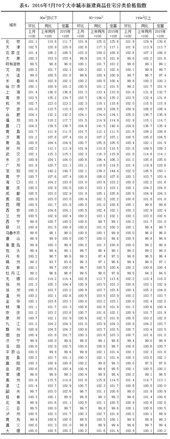 2016年7月份70個大中城市住宅銷售價格變動情況