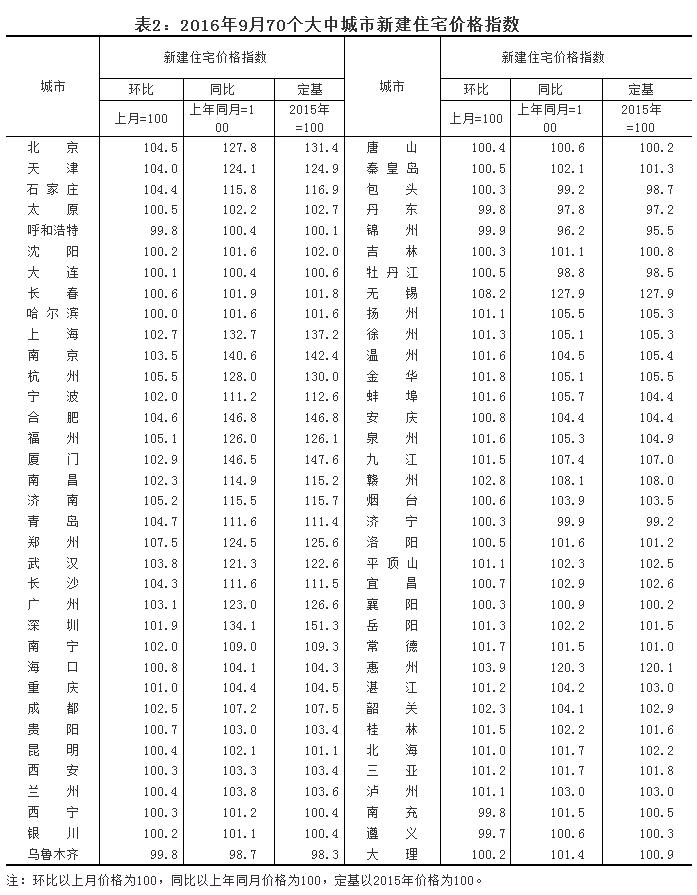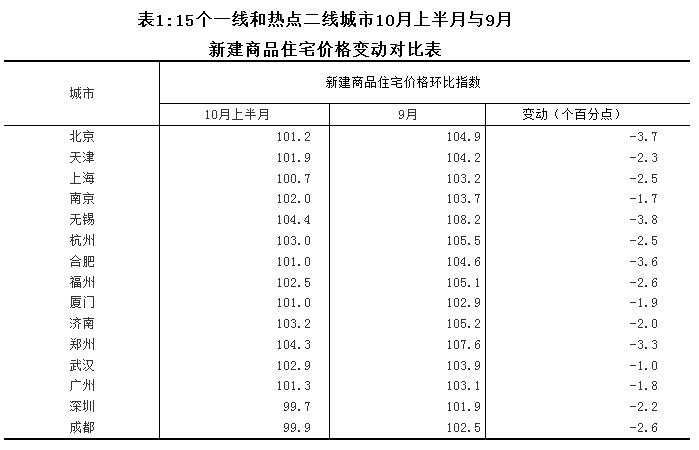 注1:為快速反映近期房地產市場的變化,國家統(tǒng)計局在做好9月份70個大中城市房價統(tǒng)計的同時,對其中一線和部分熱點二線城市10月上半月的房地產市場情況進行了統(tǒng)計。