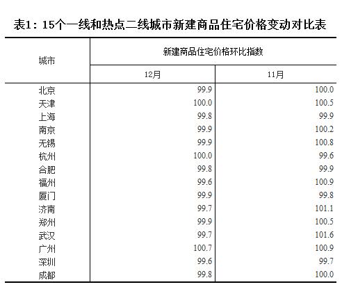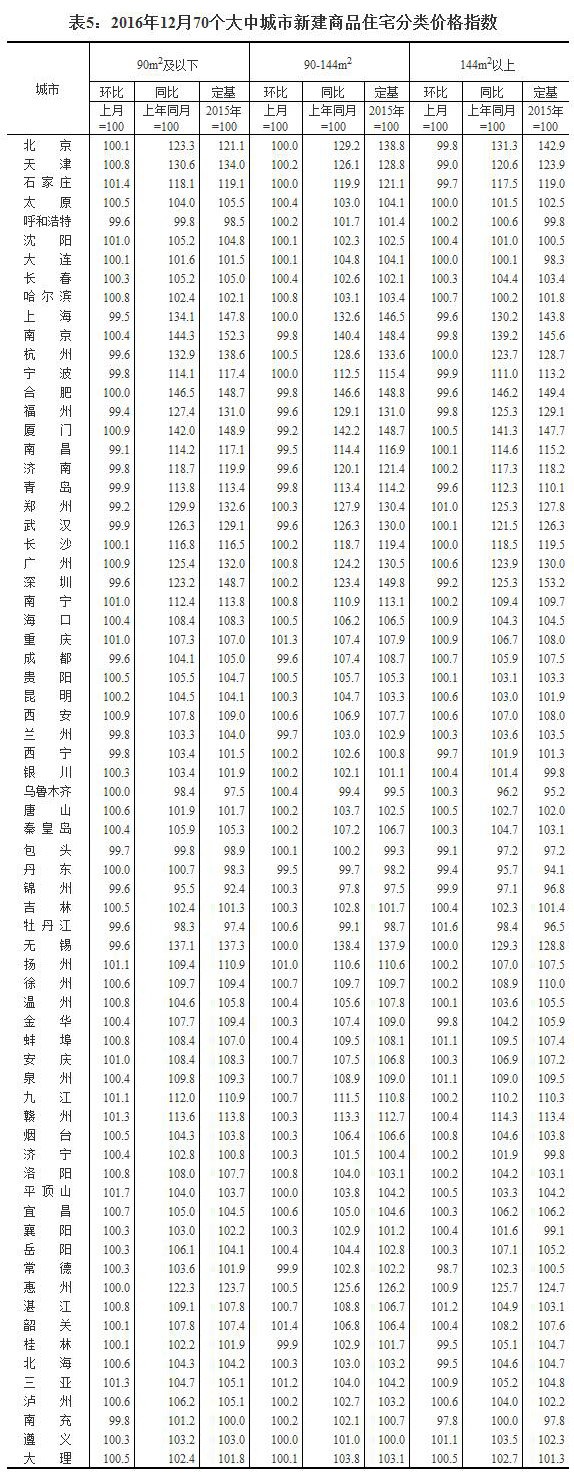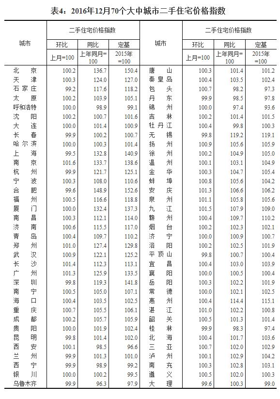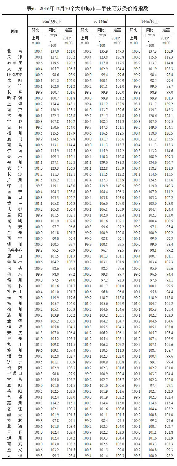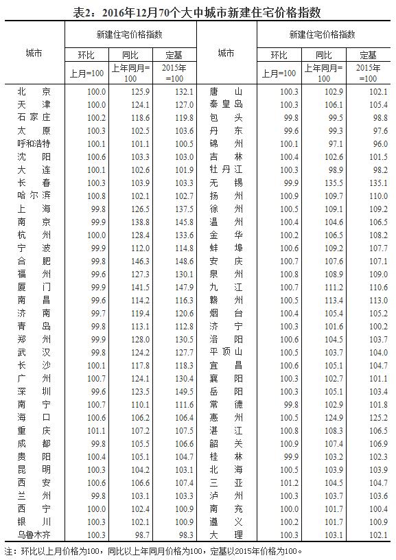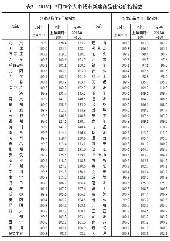 2016年12月份70個大中城市住宅銷售價格變動情況