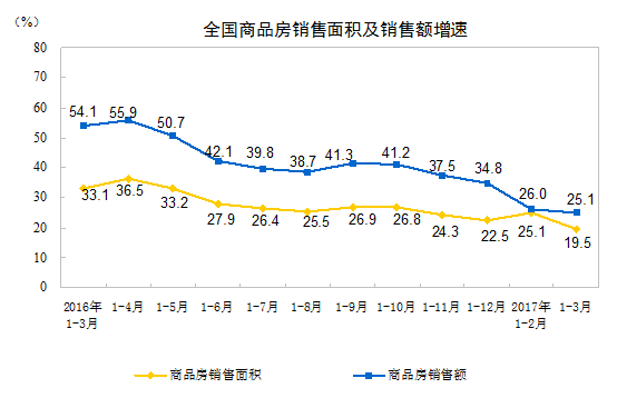 2017年1-3月份全國房地產(chǎn)開發(fā)投資和銷售情況