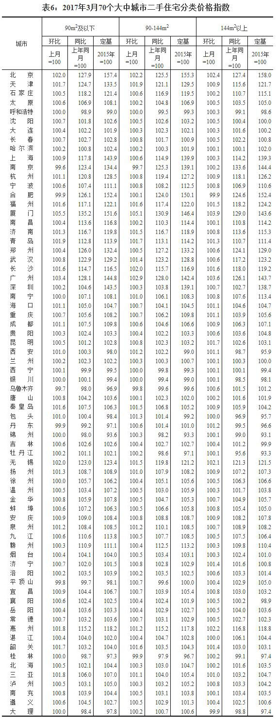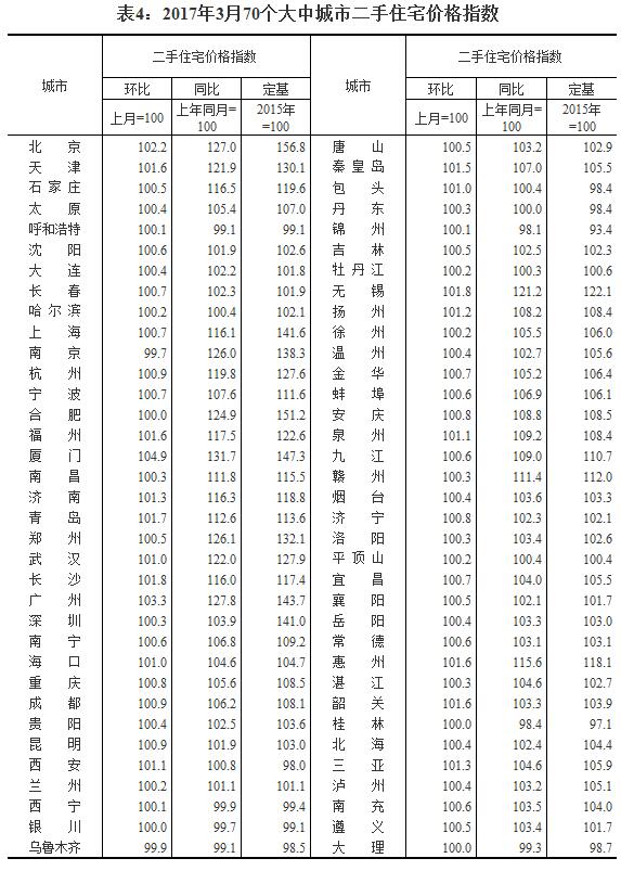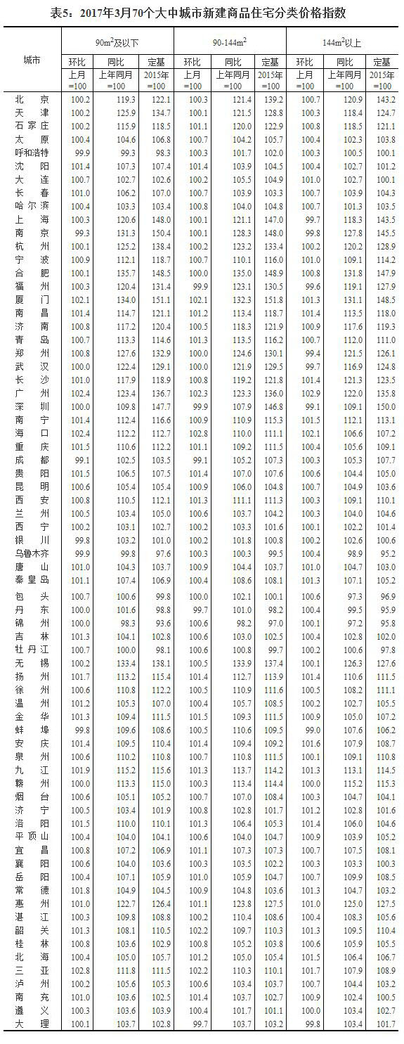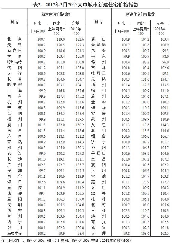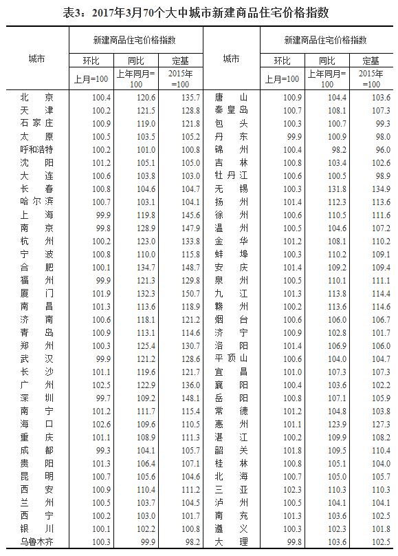 2017年3月份70個(gè)大中城市住宅銷售價(jià)格變動(dòng)情況