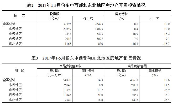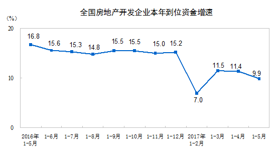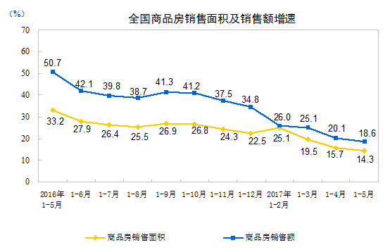 2017年1-5月份全國房地產開發投資和銷售情況