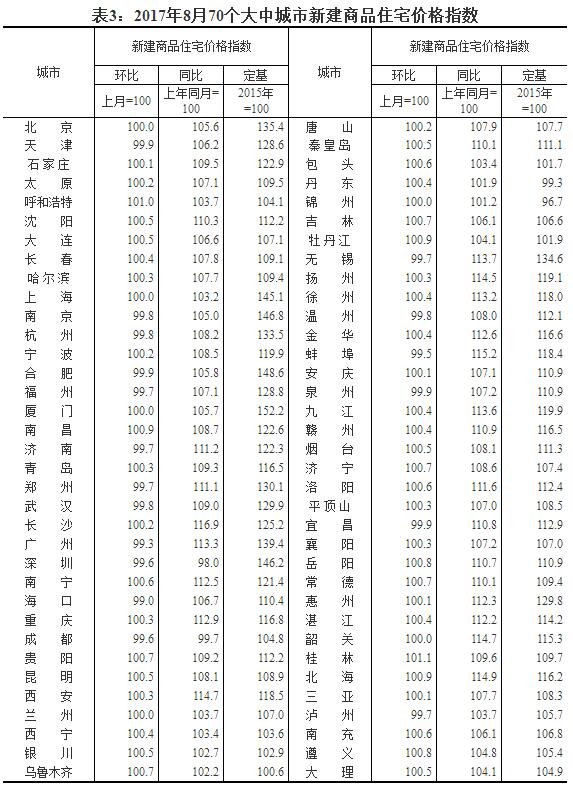 2017年8月份70個大中城市住宅銷售價格變動情況