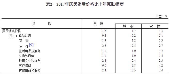 全年居民消費價格比上年上漲1.6%。工業生產者出廠價格上漲6.3%。工業生產者購進價格上漲8.1%。固定資產投資價格上漲5.8%。農產品生產者價格[8]下降3.5%。