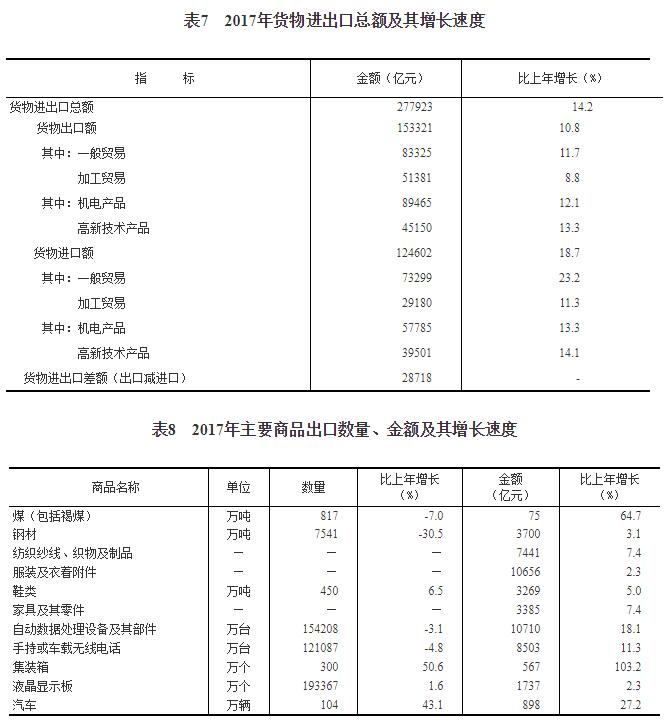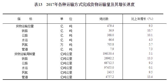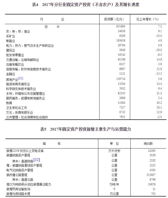 中華人民共和國2017年國民經濟和社會發展統計公報