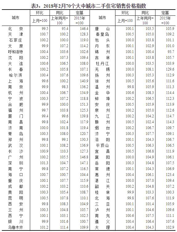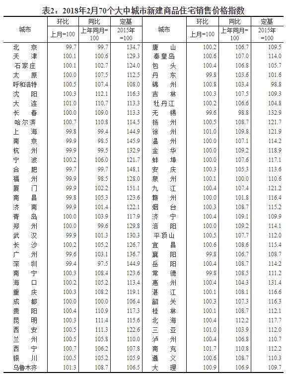 2018年2月份70個大中城市住宅銷售價格變動情況