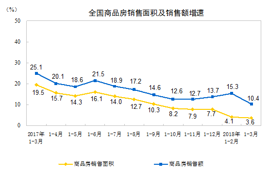 2018年1-3月份全國房地產(chǎn)開發(fā)投資和銷售情況