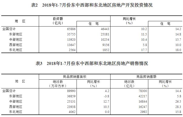 1-7月份,東部地區房地產開發投資35755億元,同比增長11.5%,增速比1-6月份提高0.7個百分點;中部地區投資13920億元,增長10.4%,增速回落1個百分點;西部地區投資13647億元,增長5.8%,增速提高1.6個百分點;東北地區投資2564億元,增長17.7%,增速與1-6月份持平。