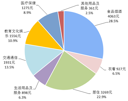 居民消費支出是指居民用于滿足家庭日常生活消費需要的全部支出,既包括現金消費支出,也包括實物消費支出。消費支出包括食品煙酒、衣著、居住、生活用品及服務、交通通信、教育文化娛樂、醫療保健以及其他用品及服務八大類。