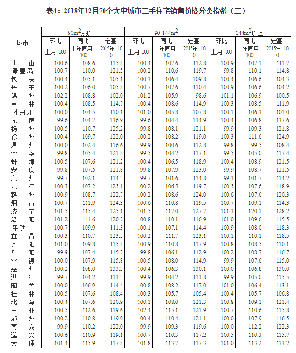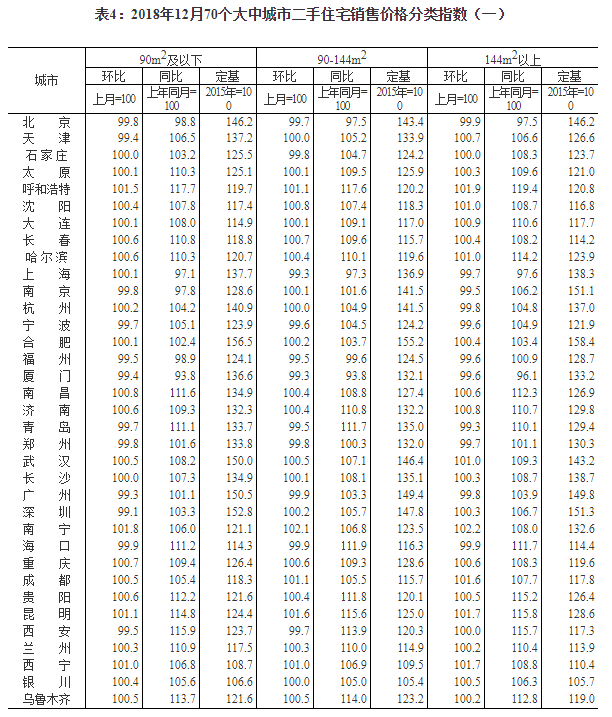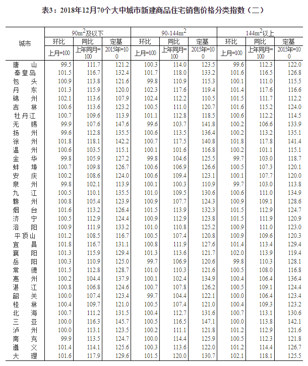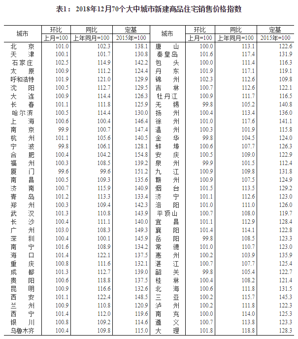 2018年12月份70個大中城市商品住宅銷售價格變動情況