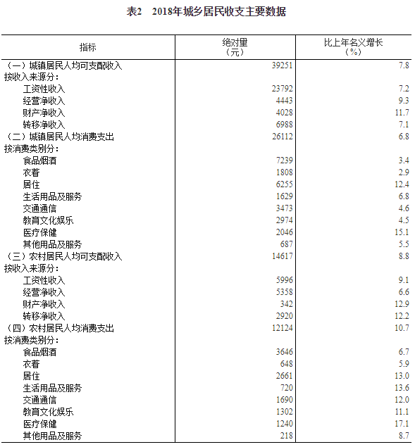 2018年居民收入和消費支出情況