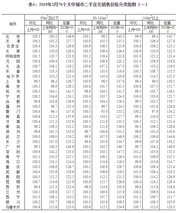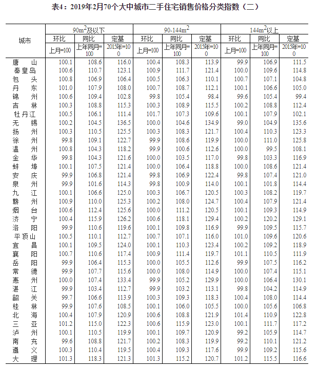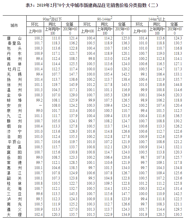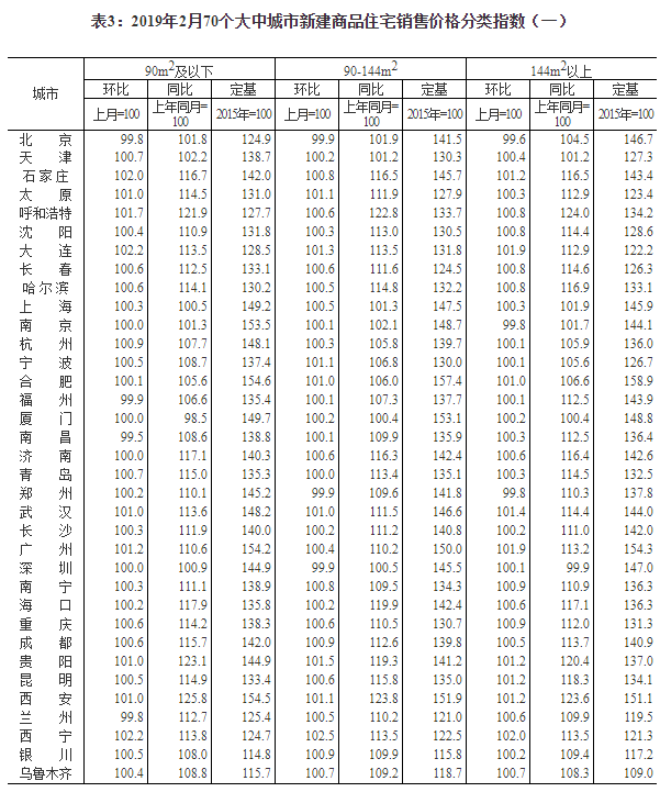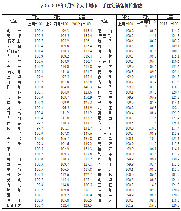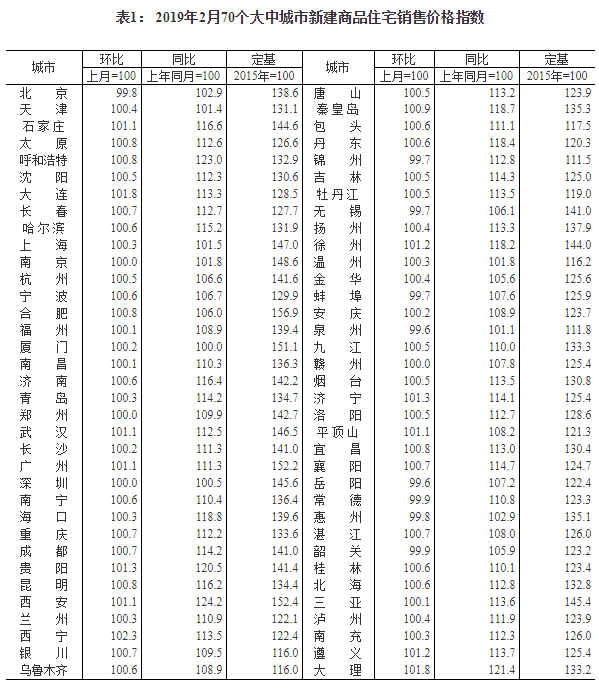2019年2月份70個大中城市商品住宅銷售價格變動情況