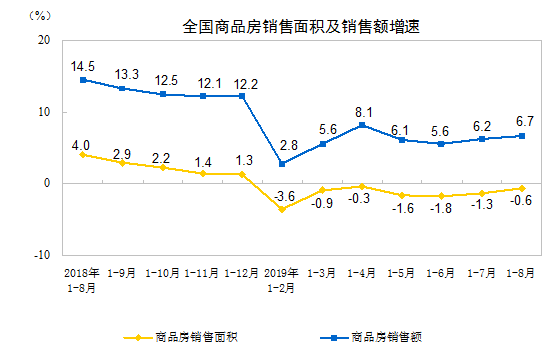 2019年1-8月份全國房地產開發投資和銷售情況