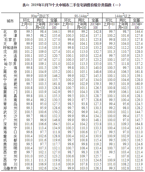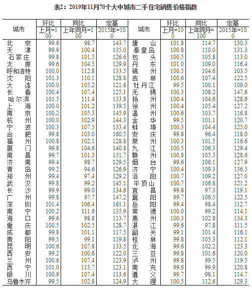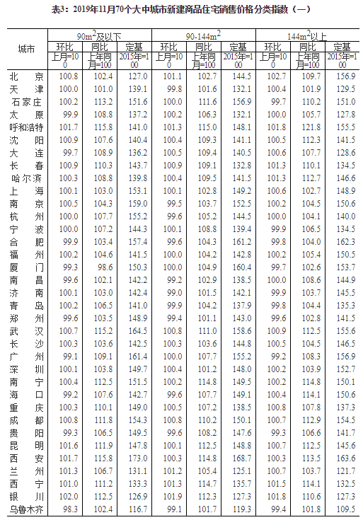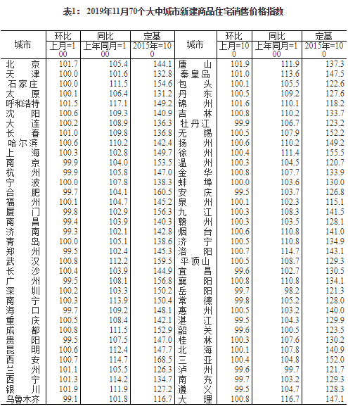 2019年11月份70個大中城市商品住宅銷售價格變動情況