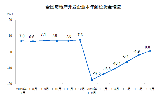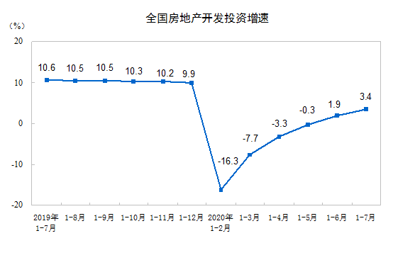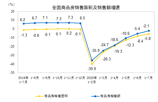 2020年1-7月份全國房地產開發投資和銷售情況