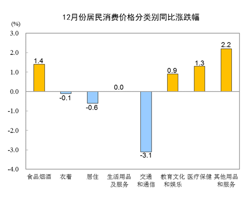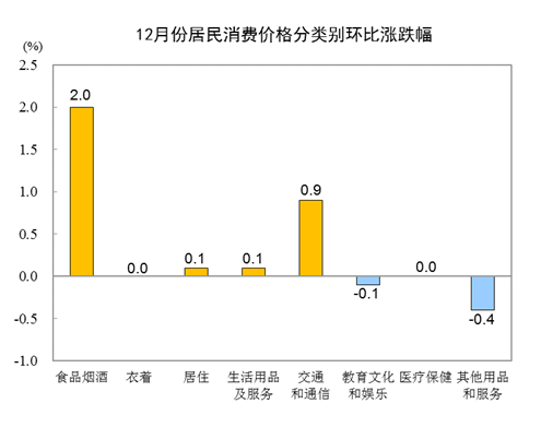 2020年12月份居民消費價格同比上漲0.2%
